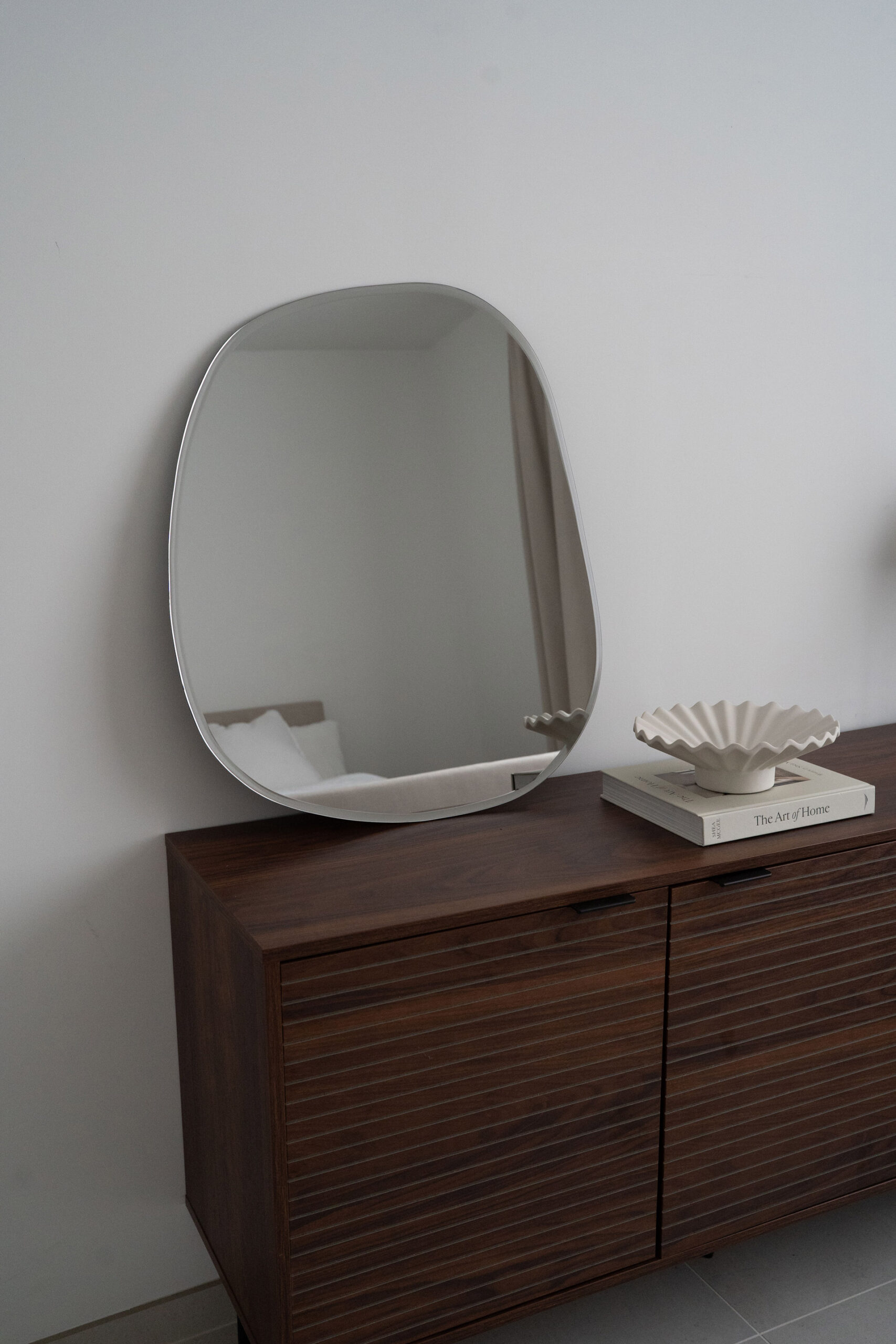 This frameless mirror reimagines the classic rectangle with a softly irregular silhouette.